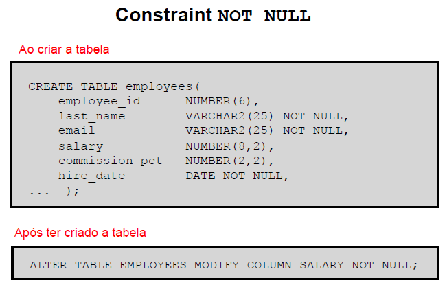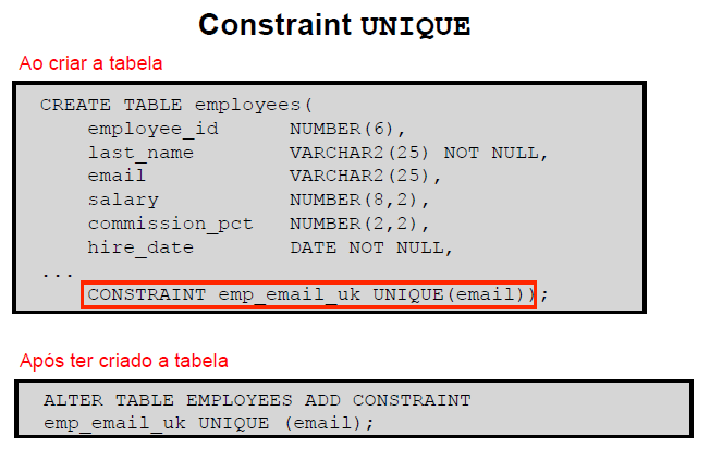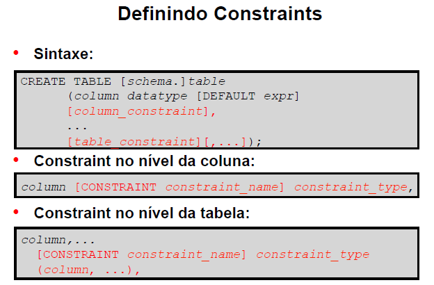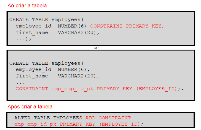 A adição de constraints em uma tabela pode ser feita de duas maneiras: