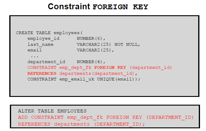 - FOREIGN KEY: Define a coluna da tabela filha no nível de constraint da tabela