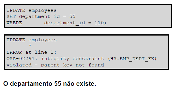 regra de atualização for NO ACTION, serão verificadas as tabelas dependentes